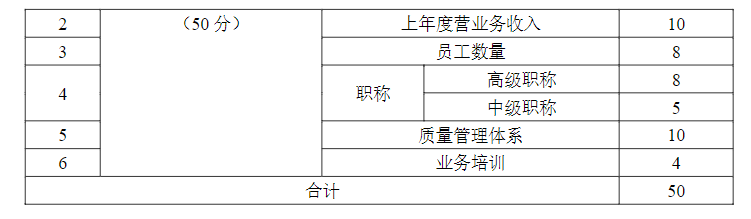 支撐保障條件指標(biāo)包括環(huán)境咨詢(環(huán)保管家)服務(wù)單位的注冊(cè)資金、上年度營業(yè)收入、員工數(shù)量、職稱、質(zhì)量管理體系以及業(yè)務(wù)培訓(xùn)6項(xiàng)二級(jí)指標(biāo)。支撐保障條件指標(biāo)評(píng)分見表1。