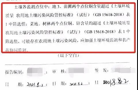 抽樣檢測(cè)發(fā)現(xiàn)周邊地塊土壤中銅、鋅含量超過(guò)《土壤環(huán)境質(zhì)量農(nóng)用地土壤污染風(fēng)險(xiǎn)管控標(biāo)準(zhǔn)(試行)》篩選值,環(huán)境受到污染▼