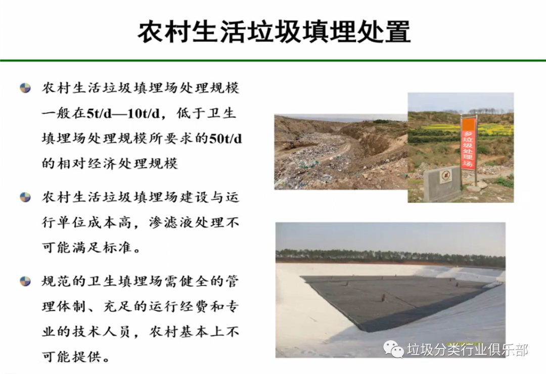 填埋場(chǎng)由于當(dāng)前城市和農(nóng)村沒(méi)有區(qū)分。當(dāng)前,要達(dá)到現(xiàn)在的符合國(guó)家標(biāo)準(zhǔn)的處理的水平是不現(xiàn)實(shí)的,承擔(dān)不起也沒(méi)有技術(shù)的能力,農(nóng)村專(zhuān)業(yè)技術(shù)人員都沒(méi)有、沒(méi)有人去運(yùn)行設(shè)施,所以它不可能達(dá)到那樣的水平。所以,它很多是時(shí)候也就是一個(gè)簡(jiǎn)單的堆放。