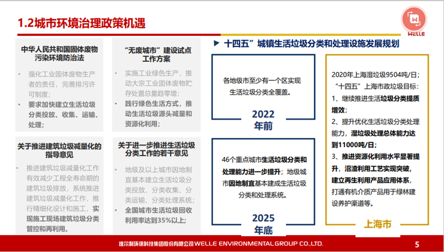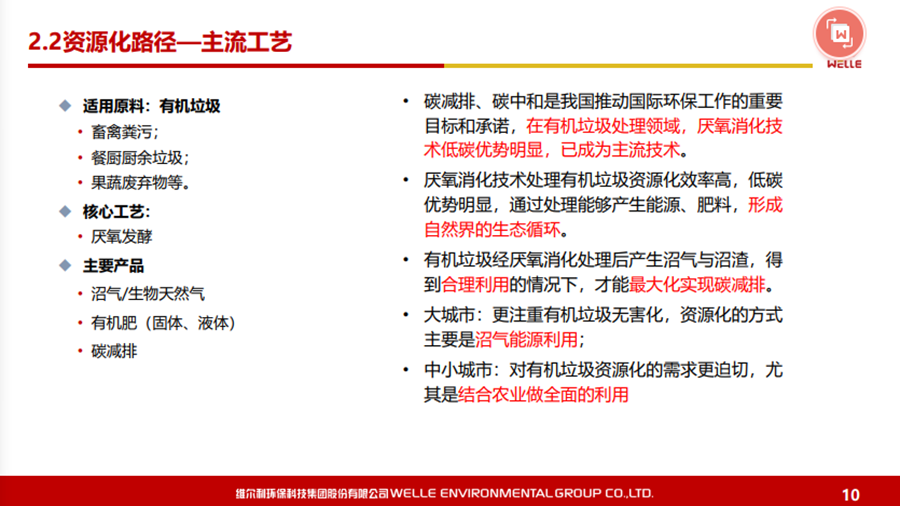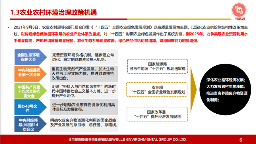 本文圍繞碳中和背景下的政策機(jī)遇、城鄉(xiāng)有機(jī)廢棄物資源化的的主要處理方法和路徑等內(nèi)容展開(kāi),同時(shí)對(duì)維爾利集團(tuán)概況和發(fā)展歷程做了簡(jiǎn)要回顧。 2021年10月20-21日,2021年中國(guó)沼氣學(xué)會(huì)學(xué)術(shù)年會(huì)暨中德沼氣合作論壇在南京舉行。作為2021年中國(guó)沼氣學(xué)會(huì)學(xué)術(shù)年會(huì)的承辦單位,維爾利環(huán)保科技集團(tuán)股份有限公司董事長(zhǎng)李月中博士以《城鄉(xiāng)有機(jī)廢棄物資源化路徑探討》為主題,與大家一起探討了碳中和背景下城鄉(xiāng)有機(jī)廢棄物資源化的發(fā)展與未來(lái)。報(bào)告圍繞碳中和背景下的政策機(jī)遇、城鄉(xiāng)有機(jī)廢棄物資源化的的主要處理方法和路徑等內(nèi)容展開(kāi),同時(shí)對(duì)維爾利集團(tuán)概況和發(fā)展歷程做了簡(jiǎn)要回顧。本文根據(jù)其發(fā)言整理。▼維爾利環(huán)??萍技瘓F(tuán)股份有限公司董事長(zhǎng) 李月中各位領(lǐng)導(dǎo)、各位專(zhuān)家、各位同仁,大家上午好!今天有幸代表維爾利集團(tuán)和大家做交流,作為會(huì)議的承辦方,也感謝中國(guó)沼氣學(xué)會(huì)、南京大學(xué)、德國(guó)沼氣協(xié)會(huì)給維爾利這個(gè)機(jī)會(huì)。維爾利作為專(zhuān)業(yè)的企業(yè),實(shí)際上歷史并不是很長(zhǎng),但是我們對(duì)沼氣和厭氧技術(shù)這塊有自己的獨(dú)到見(jiàn)解。作為一個(gè)商業(yè)機(jī)構(gòu),企業(yè)怎么能夠在競(jìng)爭(zhēng)行業(yè)里生存和發(fā)展?在這里和大家做一些交流,和大家一起思考,同時(shí)希望在座的同仁能夠在這個(gè)行業(yè)相對(duì)比較困難的情況下抱團(tuán)取暖。2020年9月,國(guó)家主席習(xí)近平在聯(lián)合國(guó)大會(huì)上提出“二氧化碳排放力爭(zhēng)于2030年前達(dá)到峰值,努力爭(zhēng)取2060年前實(shí)現(xiàn)碳中和”。2021年3月15日,習(xí)近平總書(shū)記主持召開(kāi)中央財(cái)經(jīng)委員會(huì)第九次會(huì)議并發(fā)表重要講話強(qiáng)調(diào),要把碳達(dá)峰、碳中和納入生態(tài)文明建設(shè)整體布局,拿出抓鐵有痕的勁頭,如期實(shí)現(xiàn)2030年前碳達(dá)峰、2060年前碳中和的目標(biāo)。從能源結(jié)構(gòu)上來(lái)說(shuō),有機(jī)垃圾資源化產(chǎn)生的生物質(zhì)能源在實(shí)現(xiàn)雙碳目標(biāo)上具有獨(dú)特意義。這實(shí)際上也是倒推企業(yè)行業(yè)轉(zhuǎn)型。對(duì)大家來(lái)說(shuō),“碳達(dá)峰碳中和”既是一個(gè)挑戰(zhàn)也是一個(gè)機(jī)會(huì)。這里面包括了現(xiàn)在我們推出的對(duì)城市環(huán)境,對(duì)農(nóng)村農(nóng)業(yè)環(huán)境可能存在的機(jī)會(huì),這些機(jī)會(huì)對(duì)環(huán)保產(chǎn)業(yè)來(lái)說(shuō),個(gè)人認(rèn)為受到政策影響比較大。為什么德國(guó)2016年在農(nóng)業(yè)生物天然氣領(lǐng)域有下滑?是因?yàn)槟承┱叱霈F(xiàn)了不到位的情況,一些企業(yè)就不愿意去做。在碳達(dá)峰、碳減排的前提下,我們有很多的機(jī)會(huì),但這個(gè)機(jī)會(huì)要真正落實(shí),還是要國(guó)家從頂層設(shè)計(jì)到具體的政策到位,才能夠使這個(gè)行業(yè)有比較好的發(fā)展。在城市環(huán)境治理領(lǐng)域,城市有機(jī)廢棄物(垃圾量)非常大。上海實(shí)施垃圾分類(lèi)以后,2020年上海濕垃圾的產(chǎn)生量是每天在9500-10000噸左右,也就是說(shuō)1/3為濕垃圾。這對(duì)焚燒廠來(lái)說(shuō),是一個(gè)巨大的減負(fù),但同時(shí)對(duì)處理能力也有了條件限制。我們深度參與了這方面工作,現(xiàn)在上海的處理能力大概為4000噸左右,意味著上海的濕垃圾處理能力還有60%在建,徹底實(shí)現(xiàn)垃圾分類(lèi)的路還很遠(yuǎn)。北京情況更為嚴(yán)重。原來(lái)北京只有幾個(gè)堆肥廠,原來(lái)只是三相做一點(diǎn)小的堆肥,如果真的要實(shí)現(xiàn)垃圾源頭分類(lèi),大概4、5千噸的垃圾處理設(shè)施要重新建設(shè)。在農(nóng)業(yè)農(nóng)村環(huán)境治理領(lǐng)域,包括農(nóng)產(chǎn)品加工這方面,整個(gè)市場(chǎng)規(guī)??赡芨?。各位前輩都已經(jīng)做了一些介紹,我們是不是能夠全部實(shí)現(xiàn)資源化處理,是值得商榷的。對(duì)于不同的原料,我們應(yīng)該怎么處理?作為企業(yè),我們推行起來(lái)還是有一定的難度。我們現(xiàn)在的這些大型的沼氣項(xiàng)目,它的源頭、原料、收益、收益成本,包括最終的產(chǎn)品出路,收集半徑到底多少是最合理的?實(shí)際上是需要根據(jù)不同有機(jī)廢棄物的種類(lèi)以及最終產(chǎn)品的出路來(lái)規(guī)劃項(xiàng)目規(guī)模,而不是按照政策要求。比如一萬(wàn)方的沼氣工程才稱(chēng)得上大型沼氣項(xiàng)目,才有補(bǔ)貼,這樣的項(xiàng)目就不一定能夠真正地實(shí)現(xiàn)盈利。 下面大概講一講我們最近對(duì)城鄉(xiāng)有機(jī)廢棄物資源化的主要處理方法和路徑。