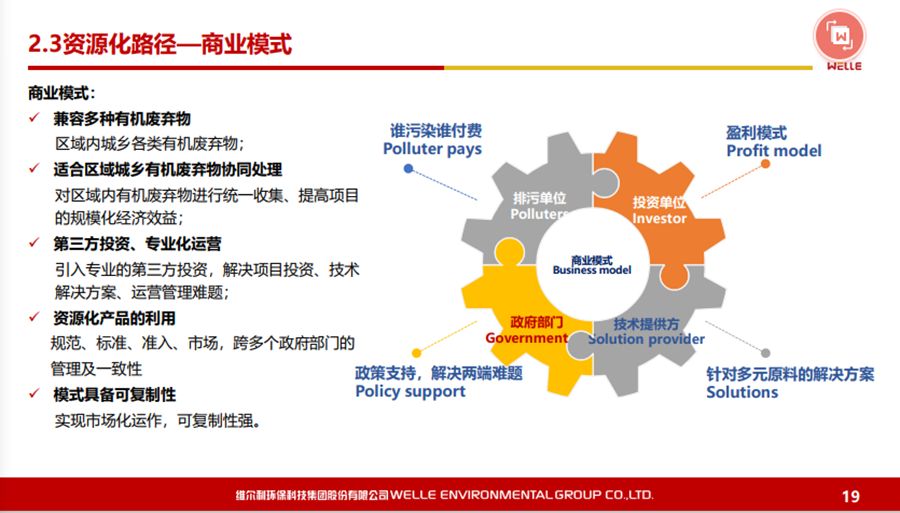 當(dāng)前,有些城市對(duì)餐廚垃圾并不是分得特別清楚。如在紹興和上海,主要是餐廚協(xié)同處理。而在有些地方,比如荊門(mén),餐廚垃圾和污泥協(xié)同處理,這樣使得厭氧反應(yīng)和有機(jī)物都會(huì)大大加強(qiáng),這也是我們這幾年積累的一些經(jīng)驗(yàn)。在農(nóng)業(yè)農(nóng)村有機(jī)廢棄物處理方面,特別要講的是和杭能的合作。創(chuàng)始人蔡昌達(dá)先生是農(nóng)業(yè)沼氣領(lǐng)域的老人,深耕行業(yè)四十多年。維爾利與杭能深度合作后,幫助我們?cè)谶@個(gè)行業(yè)里建立起了行業(yè)地位。總結(jié)起來(lái),無(wú)論是在預(yù)處理技術(shù)還是厭氧處理,沼氣儲(chǔ)存和利用,以及深度延伸的產(chǎn)品開(kāi)發(fā),都有新的技術(shù)或者產(chǎn)品。尤其是這幾年,我們通過(guò)數(shù)字化提升了整個(gè)設(shè)計(jì)、裝備制造、運(yùn)維的管理能力,有機(jī)會(huì)也可以和大家做深度交流。資源化路徑—提升有機(jī)固渣產(chǎn)品附加值僅僅看沼氣,大家還是覺(jué)得收益不能保證,尤其算賬不一定能算得過(guò)來(lái)。即使現(xiàn)在有碳減排的收益,但是要真正形成交易,變成真金白銀也不是那么容易的事。對(duì)此我們也做了新的探索,比如對(duì)于有機(jī)固渣、食用蛋白,或者是做一些食用蛋白的研究,這塊是值得探討的。中國(guó)在飼料蛋白這塊缺少量是非常大的,所以有一些機(jī)會(huì)。但是真的規(guī)?;\(yùn)行以后,食用蛋白的標(biāo)準(zhǔn)是不是能夠作為大規(guī)模飼料的原料,還需要做一些探討。目前,我們和國(guó)外一些有規(guī)模的機(jī)構(gòu)也在進(jìn)行一些合作,在國(guó)內(nèi)做現(xiàn)代化大規(guī)模養(yǎng)殖的示范項(xiàng)目。資源化路徑—提升有機(jī)廢水產(chǎn)品附加值其他的一些應(yīng)用,如肥料化的應(yīng)用也在做探討,甚至我們?cè)谧鲛r(nóng)業(yè)示范園區(qū)的實(shí)驗(yàn),更多是希望在最終產(chǎn)品的出路上做一些嘗試。在商業(yè)模式上,我們企業(yè)也需要做一些思考。無(wú)論是和投資機(jī)構(gòu)、投資人,或者是排污企業(yè)、政府、技術(shù)設(shè)備供應(yīng)商等,我們?cè)趺赐ㄟ^(guò)共贏的模式創(chuàng)新,能夠形成一些深度的商業(yè)合作?這塊我們也在做不同的思考。環(huán)境保護(hù)涉及到一些新的能源,結(jié)合鄉(xiāng)村振興,一、二、三生態(tài)聯(lián)動(dòng),也給我們這個(gè)行業(yè)帶來(lái)非常多的機(jī)會(huì),需要企業(yè)或者在座的專(zhuān)家同仁一起探討,共同發(fā)聲,才能夠把行業(yè)做得更好。在上海的松江、老港、金山、嘉定等濕垃圾處理項(xiàng)目,我們都作為技術(shù)設(shè)備供應(yīng)商EPC深度參與。另外,像維爾利紹興市循環(huán)生態(tài)產(chǎn)業(yè)園(一期)PPP項(xiàng)目,最近可能廚余還要擴(kuò)大四倍。這塊的產(chǎn)品是以沼氣為主,已經(jīng)做了生產(chǎn)線,但是還沒(méi)有進(jìn)入商業(yè)運(yùn)行。這些項(xiàng)目相對(duì)來(lái)說(shuō)還沒(méi)有真正帶有垃圾分類(lèi)的本質(zhì)。對(duì)于大城市現(xiàn)在還是以無(wú)害化為主,如果未來(lái)要到更好的資源化,跟農(nóng)業(yè)結(jié)合的可能更有前景。整個(gè)產(chǎn)業(yè)園餐廚廚余垃圾有天然氣的回收,整個(gè)項(xiàng)目協(xié)同了以后效益還是比較好的。典型案例—農(nóng)業(yè)有機(jī)廢棄物資源化在農(nóng)業(yè)項(xiàng)目方面,我們?cè)诹杭液愚r(nóng)業(yè)部推了“果沼畜”,對(duì)促進(jìn)高品質(zhì)農(nóng)業(yè)發(fā)展有非常好的作用。另外,我們?cè)凇昂邶埥聺?rùn)項(xiàng)目”做了以秸稈為原料的大型沼氣項(xiàng)目,山東民和牧業(yè)(二期)4.2萬(wàn)方生物天然氣項(xiàng)目,包括雞糞、秸稈等等項(xiàng)目,這些項(xiàng)目在國(guó)內(nèi)都有比較好的示范作用。典型案例—城鄉(xiāng)混合原料有機(jī)廢棄物資源化我們?cè)谛熘輫?guó)新做了生物天然氣項(xiàng)目,原料有秸稈、餐廚垃圾、糞便等等,這種項(xiàng)目要協(xié)同處理,未來(lái)競(jìng)爭(zhēng)力相對(duì)比較強(qiáng),包括原料的成本、出資費(fèi)用等都是有保障的,能夠把環(huán)保和能源化利用進(jìn)行深度結(jié)合。中廣核衡水混合原料10萬(wàn)方生物天然氣項(xiàng)目等,都在國(guó)內(nèi)有比較好的示范作用。王凱軍老師講到,國(guó)家發(fā)改委支持了64個(gè)大型規(guī)?;锶?xì)庠圏c(diǎn)項(xiàng)目,我們總共做了22個(gè)。這些項(xiàng)目的建設(shè)問(wèn)題不是很大,但是在運(yùn)行方面,尤其是如何能夠盈利地運(yùn)行,確實(shí)是有些問(wèn)題的。我們后來(lái)做 的“廣西武鳴”項(xiàng)目,工業(yè)原料原來(lái)做的是木薯花,后期原料供應(yīng)不足,只好通過(guò)買(mǎi)其他原料來(lái)解決。從運(yùn)營(yíng)上來(lái)說(shuō),需要非常多的資源調(diào)配,最終有可能給一些政策,能夠把餐廚、廚余垃圾建設(shè)起來(lái),項(xiàng)目才能盤(pán)活。類(lèi)似這樣的項(xiàng)目,我們希望能夠在各位的支持下能夠運(yùn)行起來(lái)。起碼自己建設(shè)的一些項(xiàng)目能夠運(yùn)行起來(lái),真正地做成示范標(biāo)桿。實(shí)際上,項(xiàng)目原料是多元的。但是從投資以及收益來(lái)說(shuō),復(fù)盤(pán)以后算下來(lái),如果后面