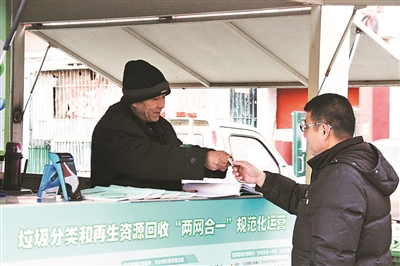 昨天上午,北青報(bào)記者來(lái)到朝陽(yáng)區(qū)勁松農(nóng)光里中社區(qū)。春節(jié)假期剛過(guò),這里已在全市率先試點(diǎn)垃圾分類回收與再生資源回收“兩網(wǎng)融合”,探索垃圾分類、分質(zhì)、分時(shí)收運(yùn)模式,引導(dǎo)居民在源頭做好垃圾分類。