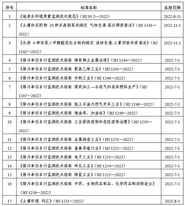 (一)生態(tài)環(huán)境部發(fā)布17項國家生態(tài)環(huán)境標準
