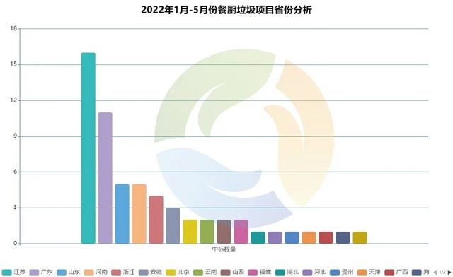 ▼2022年1月-5月餐廚垃圾項目省份分析