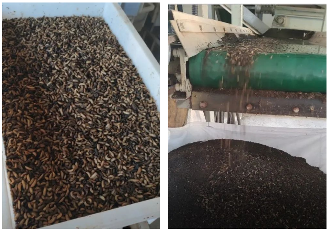 養(yǎng)殖分離系統(tǒng),是利用幼蟲強(qiáng)大的取食和消化能力,將濕垃圾轉(zhuǎn)化為高質(zhì)量的動(dòng)物蛋白。規(guī)模化的黑水虻處理需要建設(shè)專業(yè)的養(yǎng)殖車間,保持穩(wěn)定的溫度、濕度等外界條件,幼蟲經(jīng)過6-8天的成長后,及時(shí)采用蟲料篩分設(shè)備進(jìn)行蟲糞分離,最終得到鮮(干)蟲和蟲糞有機(jī)肥原料。