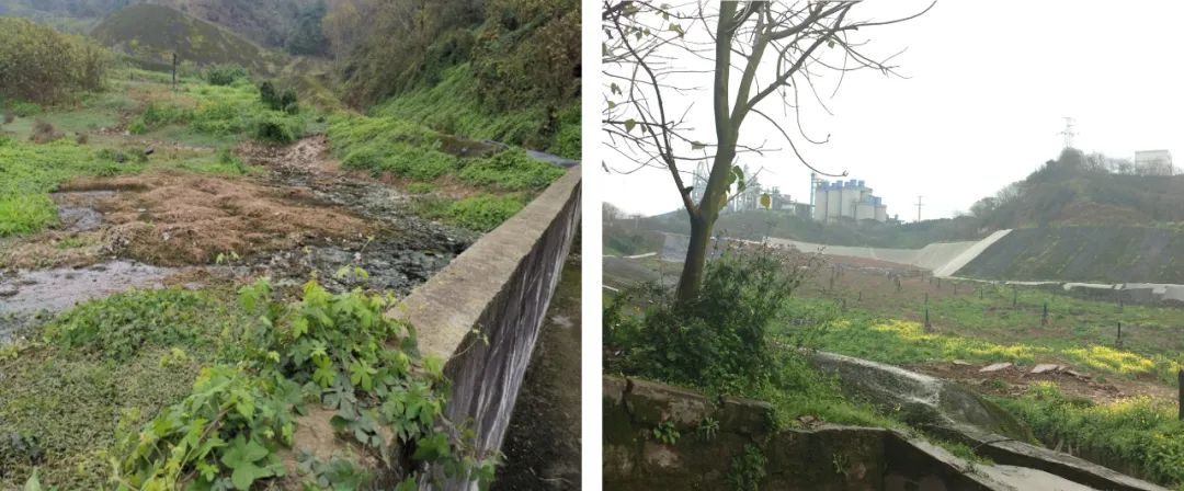 ▲圖1 生活垃圾填埋場(chǎng)分區(qū)改造建設(shè)流程上述流程中,需要說(shuō)明的有以下幾點(diǎn):現(xiàn)狀調(diào)查和勘察是首要步驟。現(xiàn)狀調(diào)查和勘察可以厘清填埋場(chǎng)現(xiàn)狀污染和現(xiàn)狀設(shè)施情況,同時(shí)為堆體的穩(wěn)定安全性及改造方案提供依據(jù)。根據(jù)現(xiàn)有垃圾填埋情況,填埋場(chǎng)整治方案分為原位治理和異地處置兩種,異地處置一般適用于已填垃圾量較少的情況,對(duì)于垃圾填埋量較大的填埋場(chǎng),通常選用原位治理方案。分區(qū)方案大致可以分為水平分區(qū)和垂直分區(qū)兩種,顧名思義,水平分區(qū)就是固化/穩(wěn)定化飛灰填埋區(qū)和生活垃圾填埋區(qū)為水平方向上的兩個(gè)獨(dú)立庫(kù)區(qū),垂直分區(qū)就是在現(xiàn)有生活垃圾堆體之上構(gòu)建獨(dú)立的固化/穩(wěn)定化飛灰填埋區(qū)。水平分區(qū)適用于原生活垃圾填埋場(chǎng)有未填埋垃圾的區(qū)域或填埋深度較淺通過(guò)垃圾清理可以獲得水平向的獨(dú)立庫(kù)區(qū),對(duì)于垃圾填埋量較大、填埋深度較深的填埋場(chǎng),采用垂直分區(qū)方案更經(jīng)濟(jì)可行。水平分區(qū)方案建設(shè)內(nèi)容主要包括新建分區(qū)壩、構(gòu)建飛灰獨(dú)立庫(kù)區(qū)的雙層防滲系統(tǒng)、飛灰滲瀝液導(dǎo)排及處理系統(tǒng);垂直分區(qū)方案則更為復(fù)雜,在現(xiàn)有生活垃圾堆體之上構(gòu)建垂直的飛灰獨(dú)立庫(kù)區(qū),還需要考慮現(xiàn)有生活垃圾堆體沉降、填埋氣導(dǎo)排堵塞、生活垃圾堆體液位高等影響飛灰堆體穩(wěn)定安全的一系列問(wèn)題,并給出解決方案。飛灰滲瀝液的水質(zhì)特點(diǎn)與生活垃圾滲瀝液完全不同,這與飛灰的形成和螯合固化工藝有關(guān),具體表現(xiàn)為:1)Cl-含量極高;2)Ca2+ 含量較高;3)鉛等重金屬含量偏高;4)COD和NH3-N等指標(biāo)偏低,若煙氣處理或飛灰螯合固化過(guò)程中采用滲瀝液處理的濃縮液,則會(huì)導(dǎo)致COD和NH3-N升高。以上特點(diǎn)導(dǎo)致常見的生化技術(shù)和膜分離技術(shù)都無(wú)法正常運(yùn)行,而采用簡(jiǎn)單的氧化還原處理工藝則難以達(dá)到排放標(biāo)準(zhǔn),故目前飛灰滲瀝液的處理思路通常為:采用晴天作業(yè)雨天不作業(yè)、加強(qiáng)雨污分流覆蓋等方式將飛灰滲瀝液產(chǎn)量控制到最低,若產(chǎn)生少量的飛灰滲瀝液,則輸送至就近的生活垃圾滲瀝液處理站協(xié)同處理。工程建設(shè)和運(yùn)營(yíng)建議。1)工程施工:建議避開雨季,若在雨季施工,盡量減少垃圾裸露面積,以控制臭氣和滲瀝液量;為避免施工裸露或施工碾壓將生活垃圾堆體積存的滲瀝液排出等施工期間滲瀝液大增的情況,建議提前做好預(yù)案。2)運(yùn)營(yíng)管理:建議做好雨污分流,控制飛灰滲瀝液的產(chǎn)量;若采用垂直分區(qū),建議按規(guī)范要求重點(diǎn)監(jiān)測(cè)垃圾堆體沉降、位移等填埋場(chǎng)安全運(yùn)行的相關(guān)指標(biāo)。西南地區(qū)某山谷型生活垃圾填埋場(chǎng),設(shè)計(jì)庫(kù)容約244萬(wàn)m3,改造時(shí)已填埋生活垃圾約130多萬(wàn)m3,剩余庫(kù)容約110萬(wàn)m3,垃圾填埋深度在20m左右。通過(guò)現(xiàn)狀調(diào)查發(fā)現(xiàn)該填埋場(chǎng)填埋了大量市政污泥、滲瀝液導(dǎo)排系統(tǒng)已堵塞、填埋氣導(dǎo)排系統(tǒng)效果不好、垃圾堆體中滲瀝液液位高、壩前形成了污泥坑,因此,給項(xiàng)目的實(shí)施帶來(lái)了嚴(yán)峻的挑戰(zhàn)。改造前現(xiàn)場(chǎng)情況見圖2。