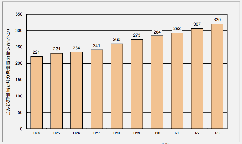 垃圾焚燒設施的平均發(fā)電量,約為320 kWh/噸。