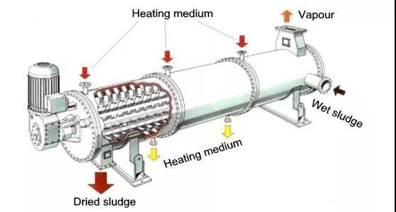 污泥介質(zhì)流程:濕污泥接收倉+污泥輸送泵+薄層干化器+半干污泥輸出設(shè)備+線性干化器+產(chǎn)品冷卻器。