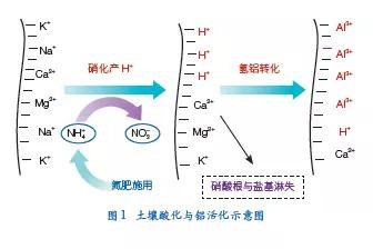 土壤酸化對農(nóng)林業(yè)生產(chǎn)和生態(tài)環(huán)境會造成嚴重危害。酸化使土壤固相中的鋁活化并釋放進入土壤溶液(圖 1),對農(nóng)作物根系產(chǎn)生毒害,影響作物生長。土壤酸化還會加速土壤養(yǎng)分的流失,使土壤肥力下降。因此土壤酸化將導致農(nóng)作物減產(chǎn),農(nóng)產(chǎn)品品質(zhì)下降,農(nóng)民收入減少。在嚴重酸化情況下(pH值<4.0),農(nóng)作物甚至無法生長,農(nóng)民顆粒無收。研究表明,酸性土壤pH值由5.4下降至4.7時,油菜籽減產(chǎn)達40%,花生和芝麻的減產(chǎn)幅度為15%左右。進一步酸化將導致更大幅度的減產(chǎn),如當土壤pH值由4.6 降至4.2時,油菜籽的減產(chǎn)幅度達62% 以上。土壤酸化還會嚴重影響農(nóng)產(chǎn)品品質(zhì),如:土壤酸化導致香蕉品質(zhì)下降,使得廣西金穗香蕉公司近年來遭受了上億元的經(jīng)濟損失。