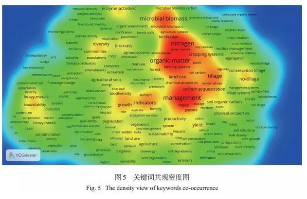 此外,土壤質量早期的研究熱點主要集中農(nóng)業(yè)方面,且多描述單個土壤性質,例如有機質、團聚體等。隨著研究的不斷深入,當前涌現(xiàn)出土壤修復、碳匯、最小數(shù)據(jù)集、土地利用變化、森林、群落等一些研究熱點,這也體現(xiàn)出土壤質量的研究開始傾向于環(huán)境方面。