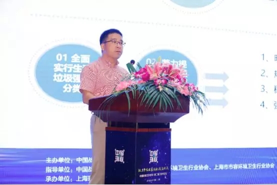 2018年8月31日,由中國戰(zhàn)略性新興產(chǎn)業(yè)環(huán)保聯(lián)盟主辦的“環(huán)衛(wèi)市場發(fā)展的機遇與挑戰(zhàn)—中國環(huán)聯(lián)2018年(第二屆)技術(shù)論壇”在上海順利召開。上海市綠化和市容管理局副局長唐家富在開幕儀式上致辭并做了“打造生活垃圾全程分類體系”的精彩分享。