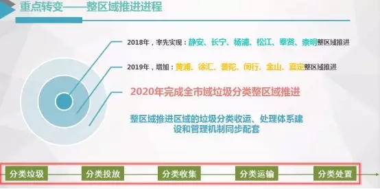 在原來一個小區(qū)、一個單位零散推進的基礎上,實施整街鎮(zhèn)或整行政區(qū)推進垃圾分類,構(gòu)建既完整又具有規(guī)?;氖占\輸處置管理鏈。2018年靜安、長寧、楊浦、松江、奉賢、崇明6個區(qū)實現(xiàn)整區(qū)域推進,2019年黃浦、徐匯、普陀、閔行、嘉定、金山6個區(qū)實現(xiàn)整區(qū)域推進,2020年全市全面實現(xiàn)整區(qū)域推進。