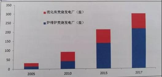 我國焚燒發(fā)電的主要模式有:流化床焚燒發(fā)電廠和爐排爐焚燒發(fā)電廠兩種。2010年以前,兩種發(fā)電廠數(shù)量基本相等。2015年以后,爐排爐焚燒發(fā)電廠比例提升,現(xiàn)在成為主流,流化床焚燒發(fā)電廠數(shù)量降至25%。