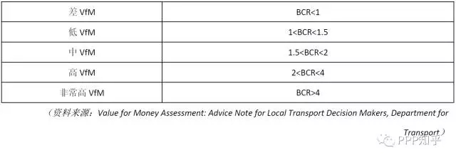 英國交通部對效益成本比(BCR-Benefit Cost Ratio)所反映的物有所值(VfM)給出了定性的導(dǎo)則,幫助地方政府做出投資決策??梢钥闯鯟rossrail處于中到高VfM的范圍。