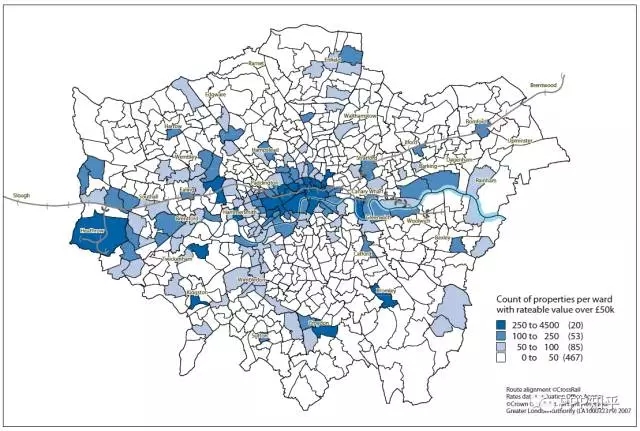 PPP模式可能使項目更加物有所值,公共預(yù)算支出更有效率,但單純依靠政府付費,財政可承受能力終歸是有上限的。因此,如何挖掘項目本身的商業(yè)潛力和拓展公共支出的來源就顯得尤為重要。大型基礎(chǔ)設(shè)施項目往往具有外部性,可以采用適當(dāng)?shù)姆椒▽⑵渫獠啃б鎯?nèi)在化,來反哺項目本身。橫穿倫敦108公里的伊麗莎白線的總建設(shè)預(yù)算達148億英鎊,計劃通過稅收增量融資和開發(fā)基礎(chǔ)設(shè)施費的模式來將地鐵帶動的土地和物業(yè)價值升值反饋給軌道項目。一方面,在未來24-30年內(nèi),對該軌道項目收益的價值5.5萬英鎊以上的商業(yè)物業(yè)額外征收2%的商業(yè)物業(yè)稅(BRS-Business Rate Supplement),如下圖所示。