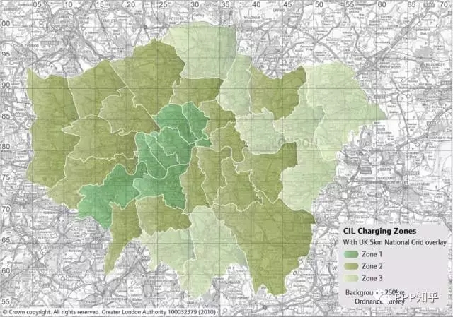 另一方面,對新建的房地產(chǎn)項目征收社區(qū)基建費(CIL-Community Infrastructure Levy),涉及的社區(qū)基礎(chǔ)設(shè)施費征收范圍如下圖所示,分為3檔稅率,分別為£50/平方米、£35/平方米、£20/平方米。