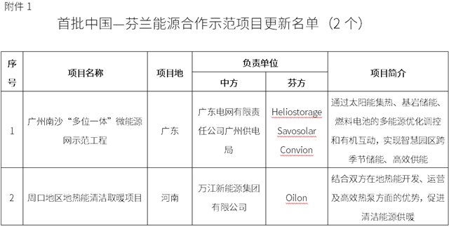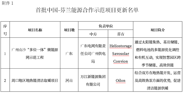 國家能源局公布首批中國—芬蘭能源合作示范項(xiàng)目更新名單以及第二批示范項(xiàng)目候選名單
