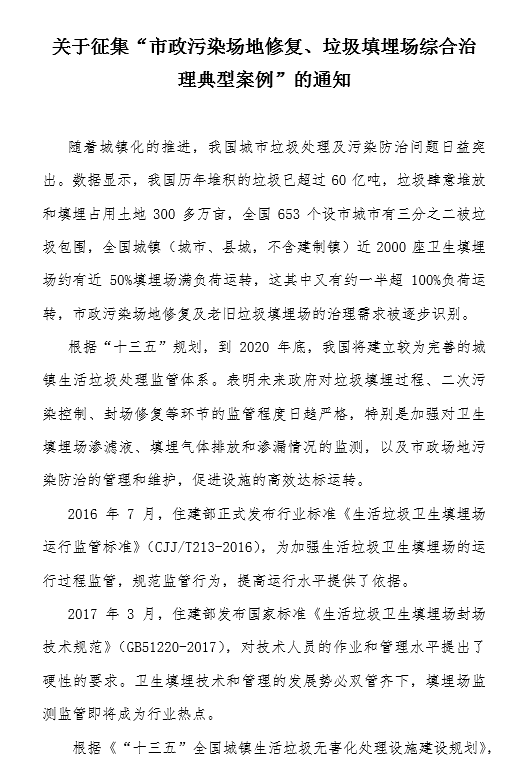 關于征集“垃圾分類優(yōu)秀模式案例”的通知2016年12月,國家主席習近平在中央財經(jīng)領導小組第十四次會議中強調(diào),要加快建立分類投放、分類收集、分類運輸、分類處理的垃圾處理系統(tǒng);形成以法治為基礎、政府推動、全民參與、城鄉(xiāng)統(tǒng)籌、因地制宜的垃圾分類制度;普遍推行垃圾分類制度,努力提高垃圾分類制度覆蓋范圍。20...