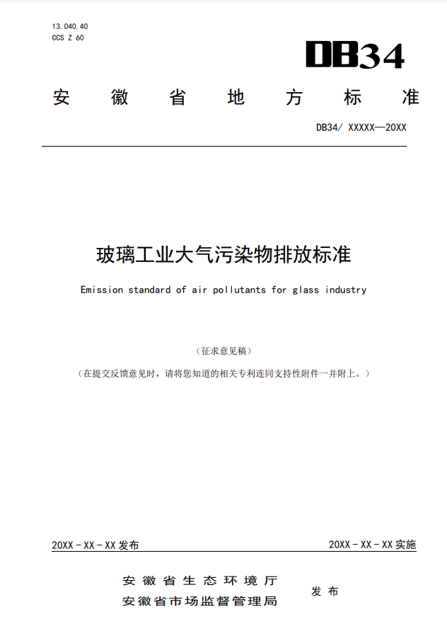 《玻璃工業(yè)大氣污染物排放標(biāo)準(zhǔn)》等2項(xiàng)安徽省地方標(biāo)準(zhǔn)公開征求意見