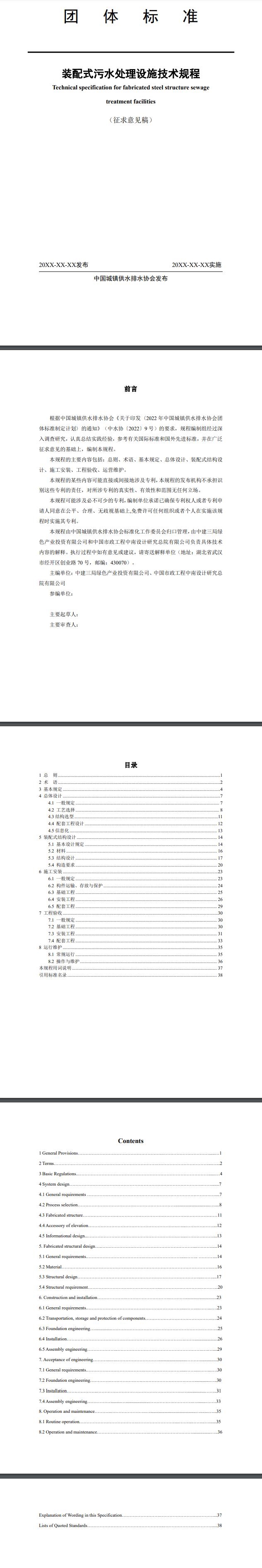 中國城鎮(zhèn)供水排水協(xié)會關于征求團體標準 《裝配式污水處理設施技術規(guī)程(征求意見稿)》 意見的通知各有關單位和專家: 根據(jù)《關于印發(fā)<2022年中國城鎮(zhèn)供水排水協(xié)會團體標準制訂計劃>的通知》(中水協(xié)〔2022〕9號),我協(xié)會組織中建三局綠色產業(yè)投資有限公司、中國市政工程中南設計研究總院有限公...