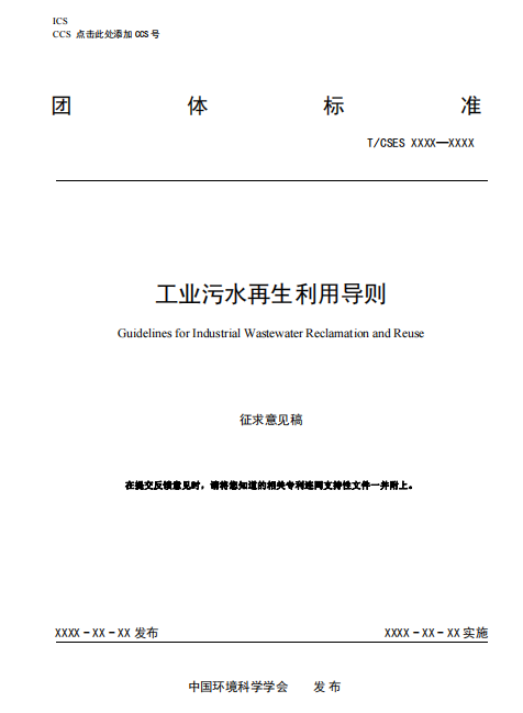 中國(guó)環(huán)境科學(xué)學(xué)會(huì)征求《工業(yè)污水再生利用導(dǎo)則(征求意見(jiàn)稿)》意見(jiàn)