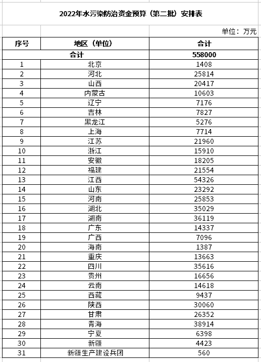 55.8億元,最大紅包給了江西!財(cái)政部下發(fā)2022年水污染防治資金預(yù)算(第二批)